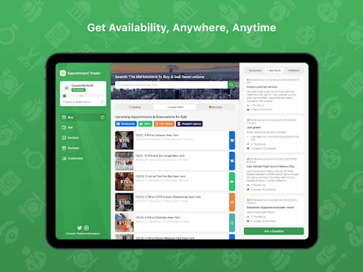 The AppointmentTrader Marketplace turns your cancelled dinner plans into cash and makes overbooked Restaurants, DMV's, SPA's, Hair-Dressers, Dog Groomers and an ever growing list of categories a thing of the past.
