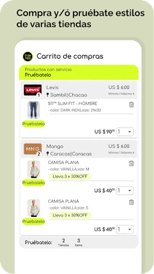 ¡Lo ropa hay que probársela antes de comprarla! En tráetelo lo sabemos, por eso somos el primer Marketplace de moda en ofrecerte el servicio Probador Express, donde te llevamos a tu casa los productos que deseas medirte y nos llevamos de una los que no te queden... Todo en menos de 24horas.