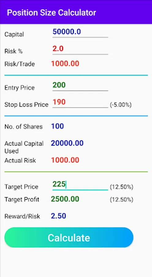 Simple and lightweight risk management app to calculate position size for traders using risk % , entry and stop loss value for the available capital.