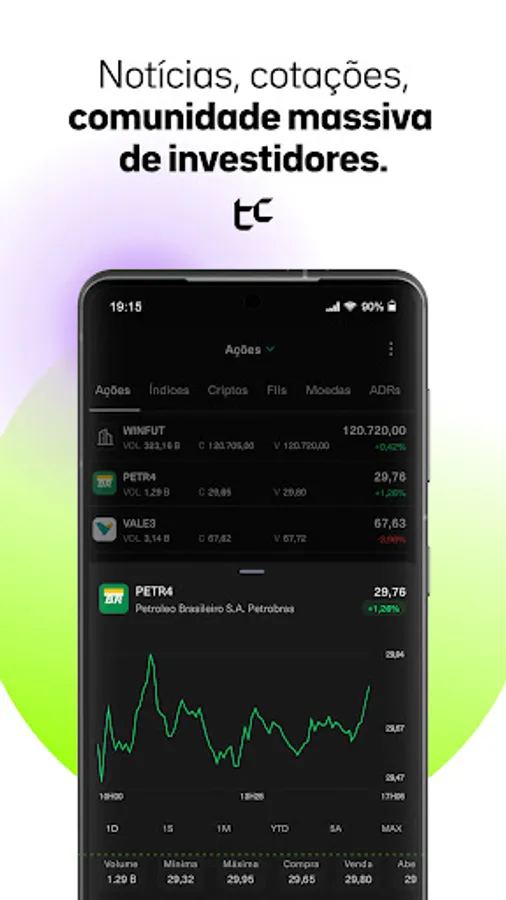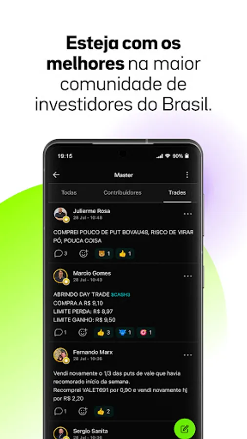 No app do TC você tem uma comunidade de investidores ao seu lado para trocar ideias de trade e compartilhar as melhores oportunidades em ações, fiis, dividendos e tudo sobre o mercado financeiro e seus investimentos.