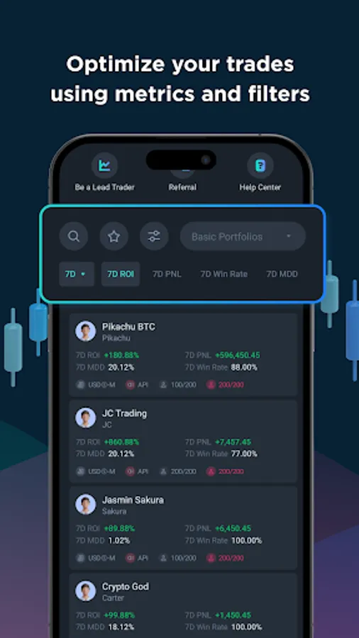 Explore and copy trades from 1000+ lead trading portfolios managed by a growing number of crypto traders from all around the world.