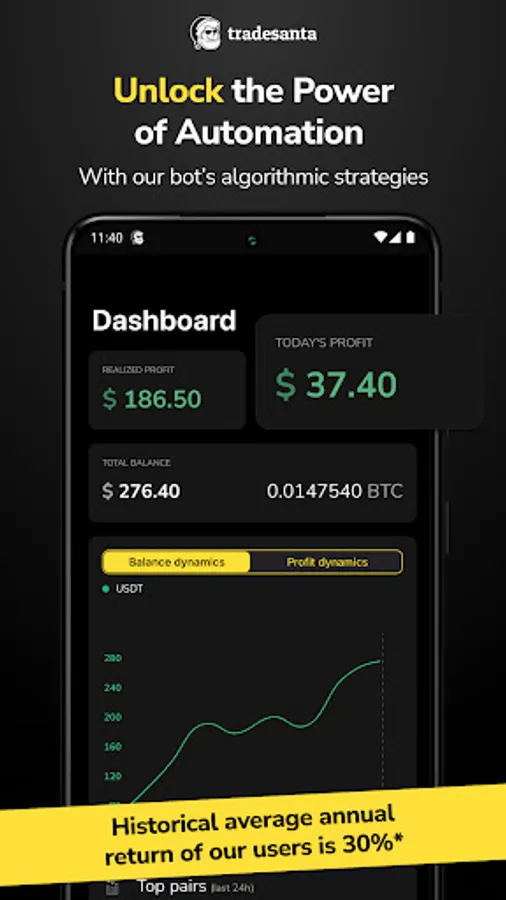 Santa bots execute user-specified algorithms and place new orders 24/7. Select a trading pair, customize bots’ settings and you will never miss on a trade.