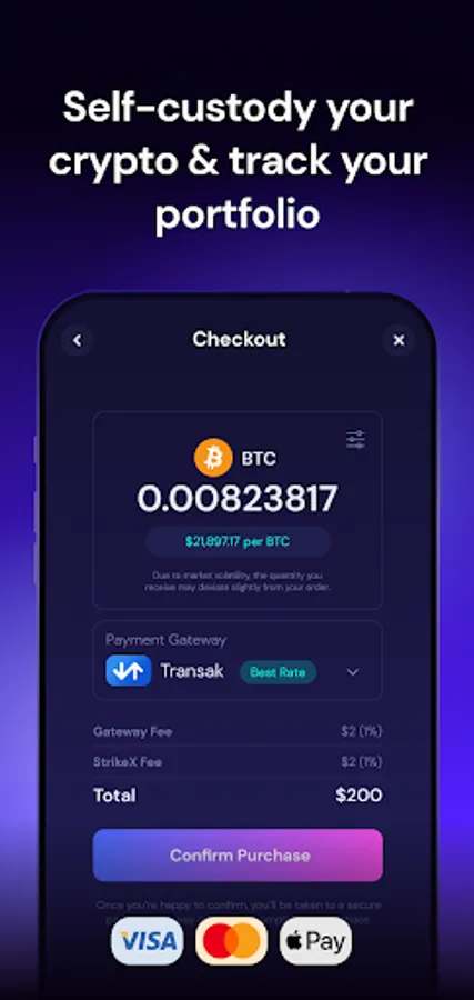Unlike exchanges, the StrikeX Wallet is non-custodial — meaning that we never have access to your funds or personal information. You maintain complete control over your assets with your unique private key recovery phrase.