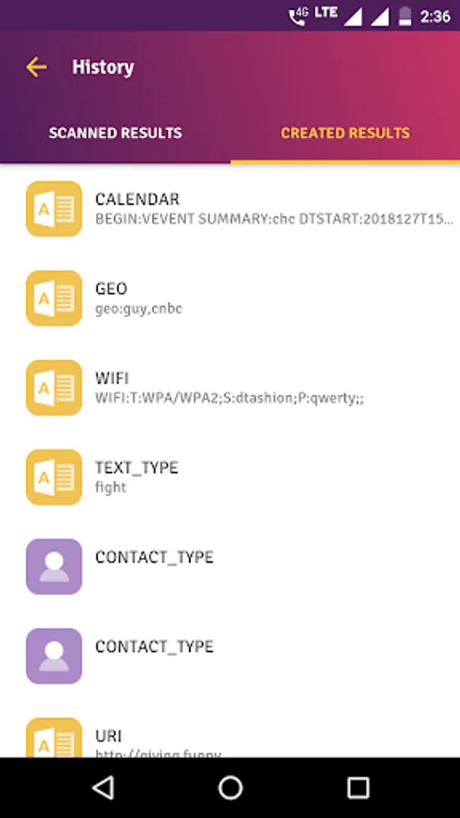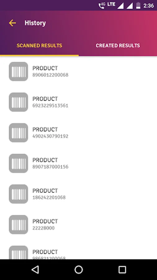 All your scanned results and created results will be included in the scan history and sorted by category. You can delete the scan results. We also divide history into history created and history scanned, you can find your different result easily.