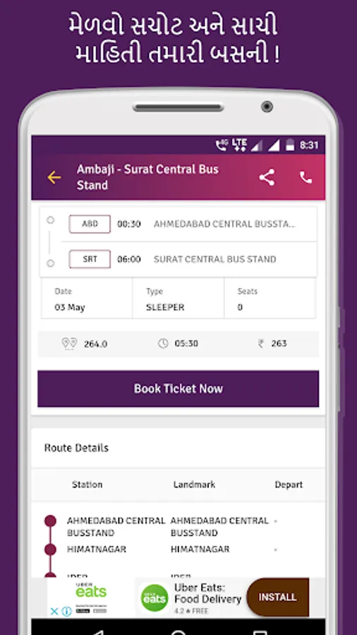 GSRTC app allows you to search and book GSRTC bus tickets. Choose your time and bus type like Gurjarnagri, Express, Sleeper and Volvo buses to apply filters. You can now book on the Bus Tickets using Net banking, credit cards, debit cards,& Wallet Payment also.