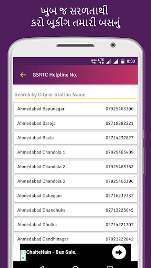 With GSRTC Bus Schedule's app you can check the buses status that run from Gujarat roadway's associated depots. You can check all the available buses from your start to your end destinations. You can check the route details of a particular bus. You can check GSRTC Bus Information, GSRTC Bus Timings, Bus Routes, GSRTC Bus Enquiry, GSRTC Bus Information and etc. GSRTC Bus Schedule app helps you to check routes before scheduling your trip to have a hassle free journey.