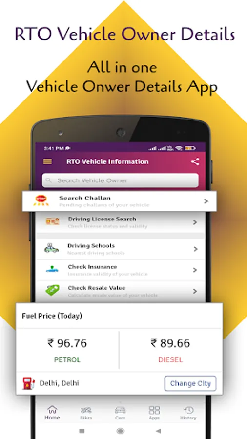 Use the RTO vehicle information app to check on-road prices of new cars and bikes in your city. You can get attractive prices for buying used cars and bikes from partners like CarDekho, Spinny, Cars24 etc