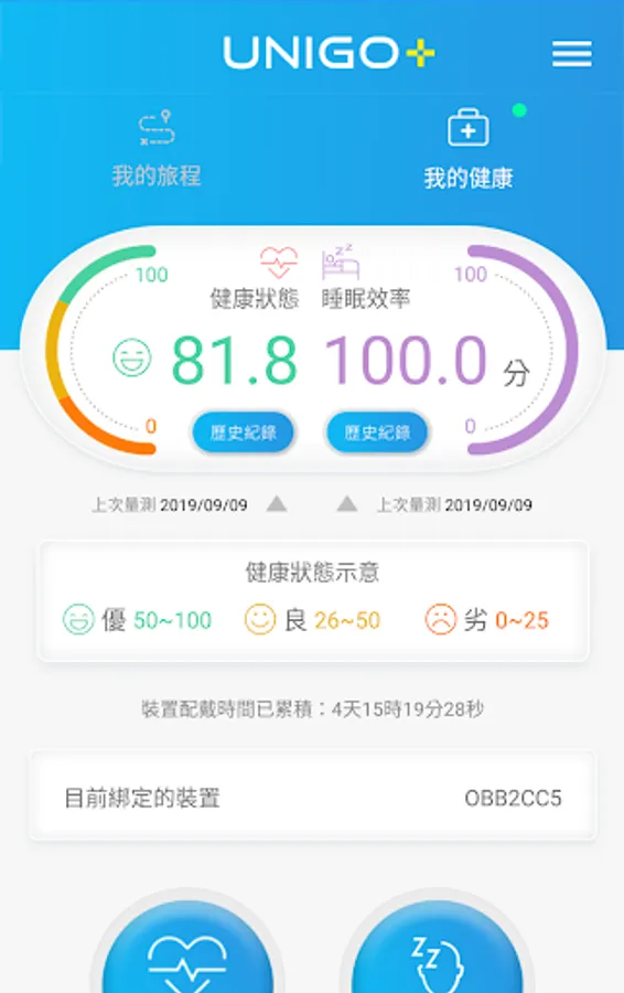 UNIGO Plus is an advanced UBI (Usage-based Insurance) driver physiological and behavioral application service app, in addition to recording complete driving information, including driving time, route, mileage, average speed, sudden braking, rapid acceleration and sharp turns In addition, UNIGO Plus adds a physiological health record function. With an exclusive smart watch, it can intimately record the user's physiological information, including heartbeat pressure and sleep efficiency. Through the analysis and feedback of UNIGO Plus driving companion and big data in the cloud, you can keep abreast of the real condition of driving and daily health, help improve your driving behavior, and create a safer driving environment.