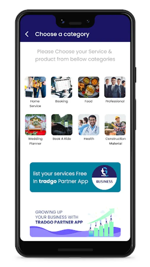 Tradgo Partners can register themselves as Home Service , Real Estate , Plumbers , Electricians ,Carpenters etc,