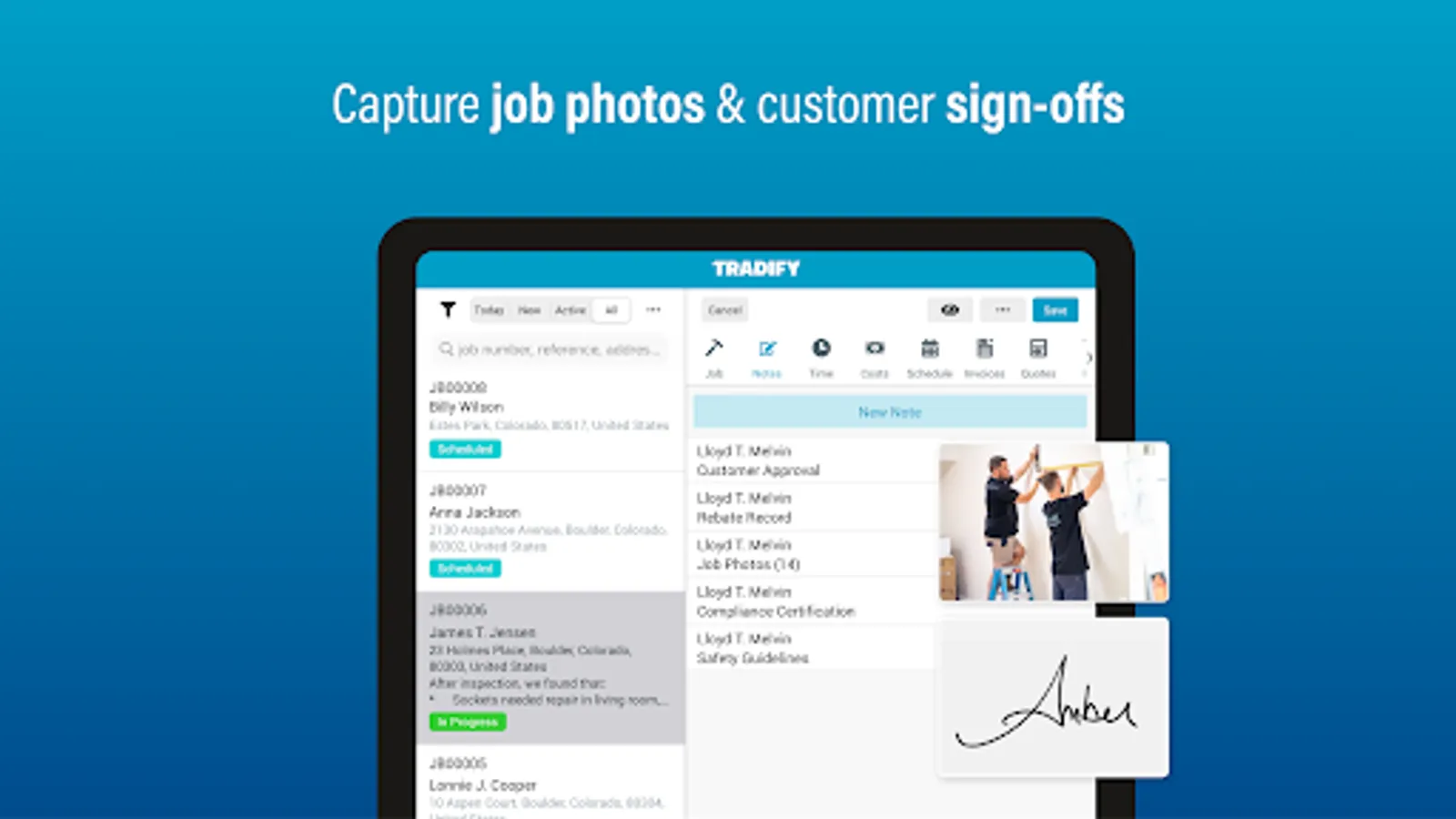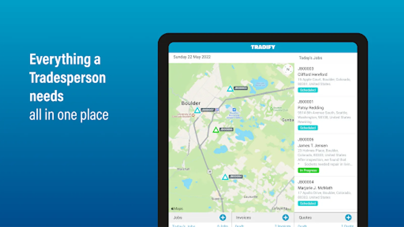 Join thousands of contractors & tradespeople using Tradify to manage their quoting, scheduling, invoicing, and other business admin. Simple & easy to use, Tradify’s job management software gives you complete control of your business. Get organized and save yourself hundreds of admin hours with Tradify.