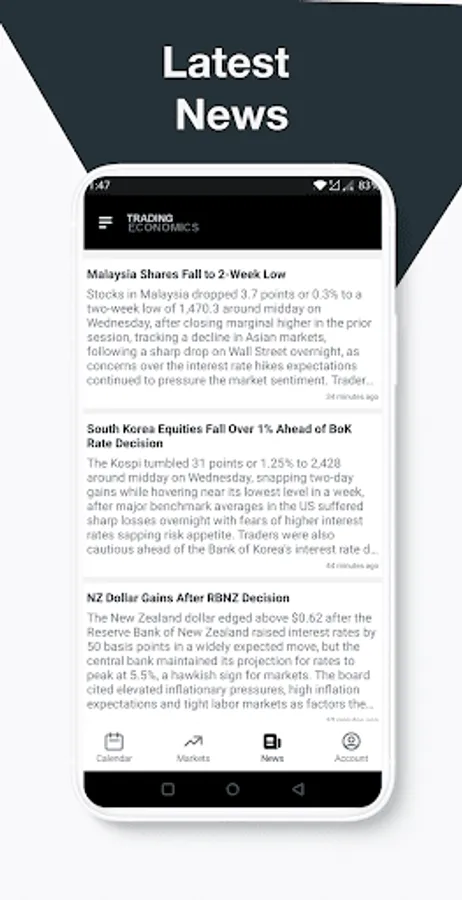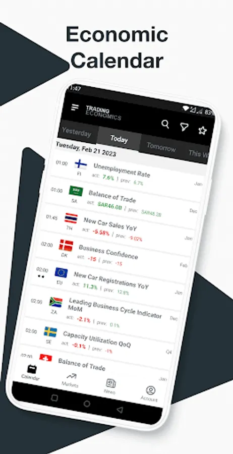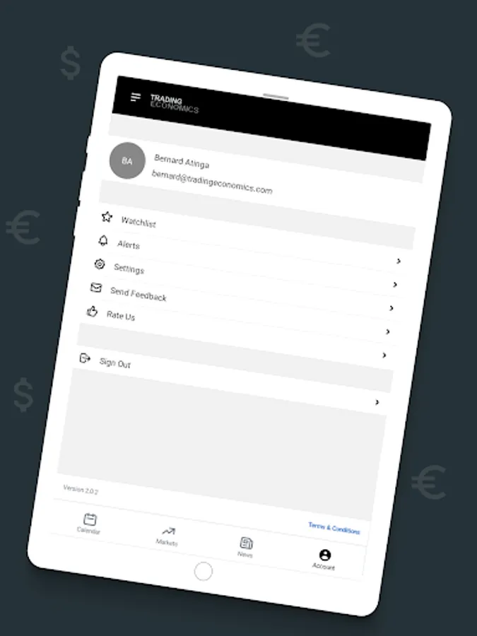 The Trading Economics app provides its users with an economic calendar, exchange rates, stock market indexes, government bond yields and commodity prices. Users can also receive alerts for economic indicators the instant they get released. Set up price targets, price change, record high/low alerts for financial markets. With more than 1.5 billion page views from more than 200 countries TradingEconomics.com is a worldwide reference. Our data is based on official sources, not third party data providers, and our facts are regularly checked for inconsistencies.
