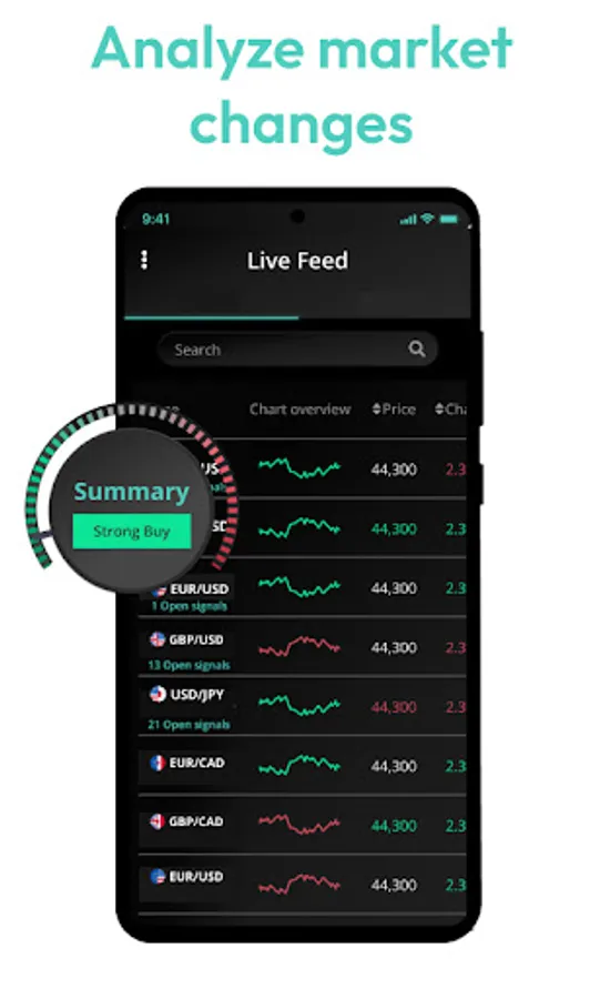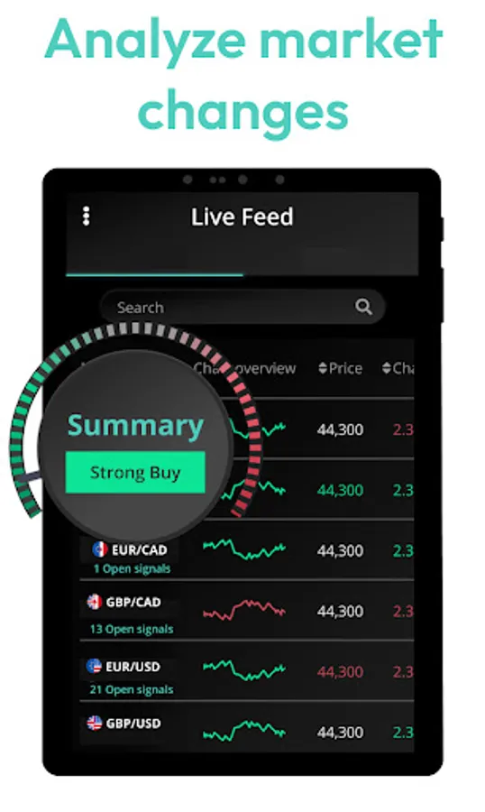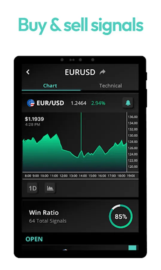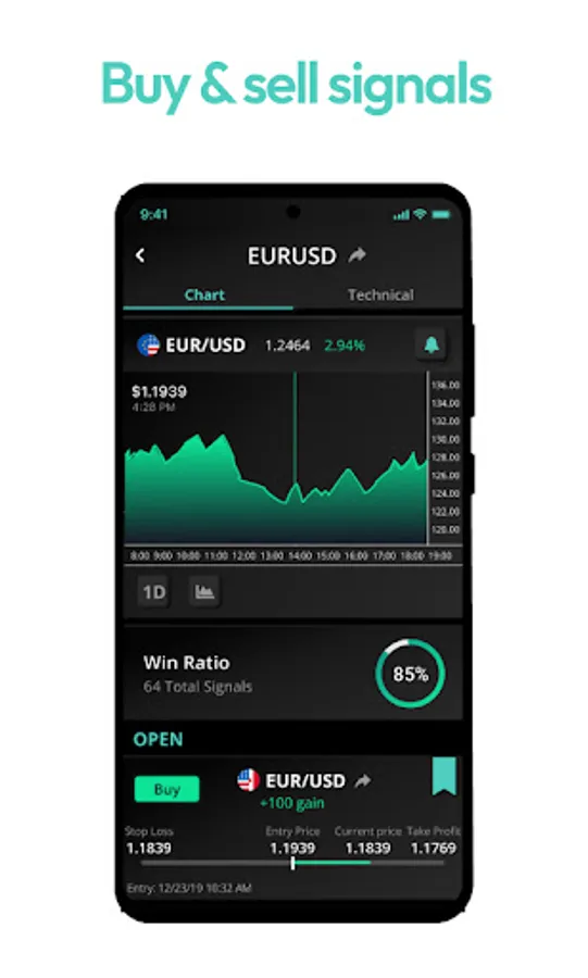 Our beautiful and easy to use live signals app can be understood by any trader. View all open and closed signals on the Dashboard. Create a personalized signals list to view all your open signals. Tap on any running signal to see in depth chart information. We will let you know when it's a good time to buy or sell.
