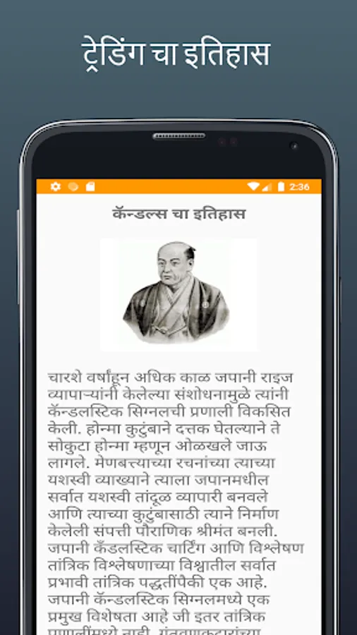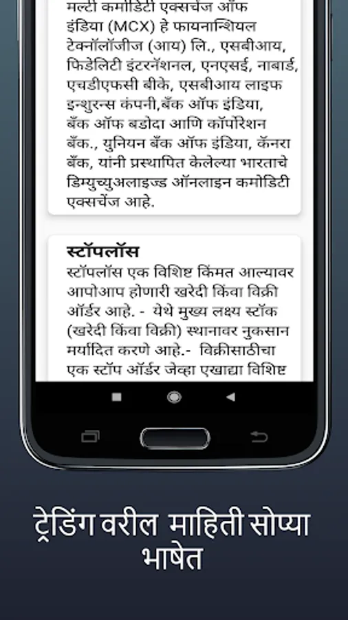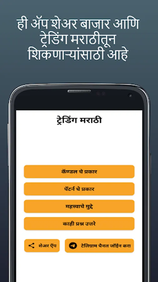 Stock trading is meant to provide Stock trading knowledge In Marathi people, where you can learn Stock trading, a Trading concept in the Marathi language. This app provides you information about the basics of stock trading, the History of candlesticks with types, and Chart patterns, and some advanced concepts in Marathi.