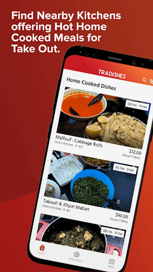 Tradishes lets customers order and pick up fresh Home Cooked Meals from nearby Home Kitchens! Also, Home Chefs can offer traditional home cooked meals to nearby customers for pick up or have the meals delivered.