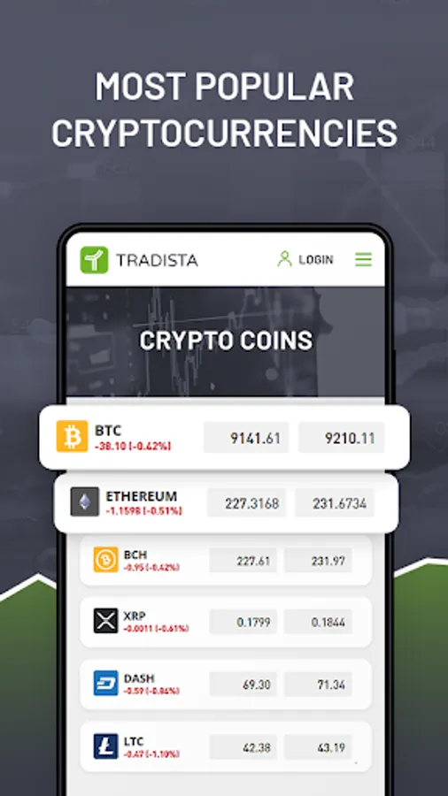 Tradista’s CFD trading platform*, offers an intuitive user interface for CFD trading on cryptocurrencies, forex, stocks and commodities. With hundreds of underlying trading assets available, you will always be able to create a trading portfolio that is right for you.