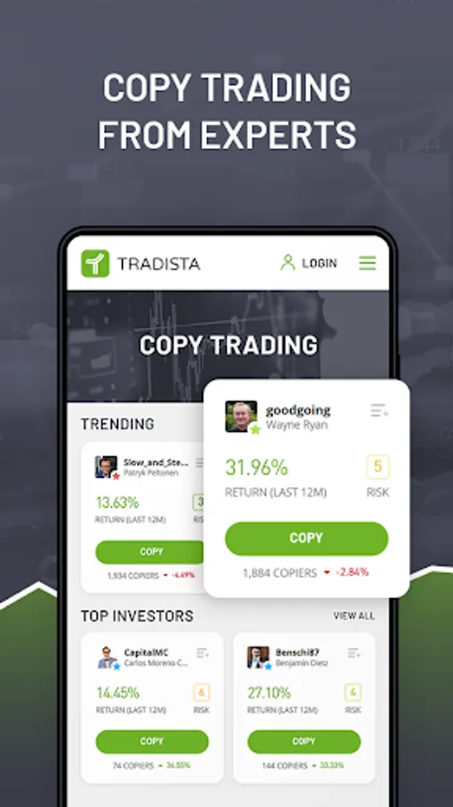 Tradista’s social trading is a mobile trading app for active trading & long-term investing. Tradista’s copy trader allows you to learn popular investment and trading strategies by copying the trades executed by other investors in the financial markets.