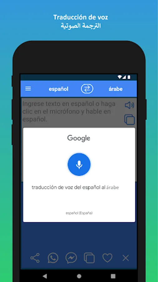✓ 3. Voice typing in Spanish. Voice Translation from Spanish to Arabic.
