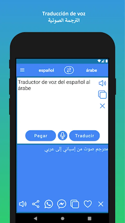 ✓ 4. Voice typing in Arabic. Voice Translation from Arabic to Spanish.