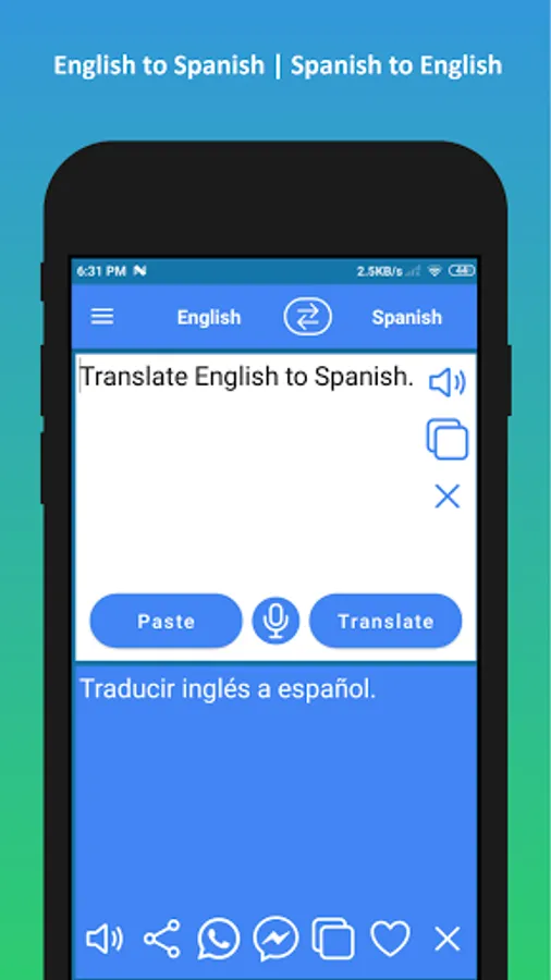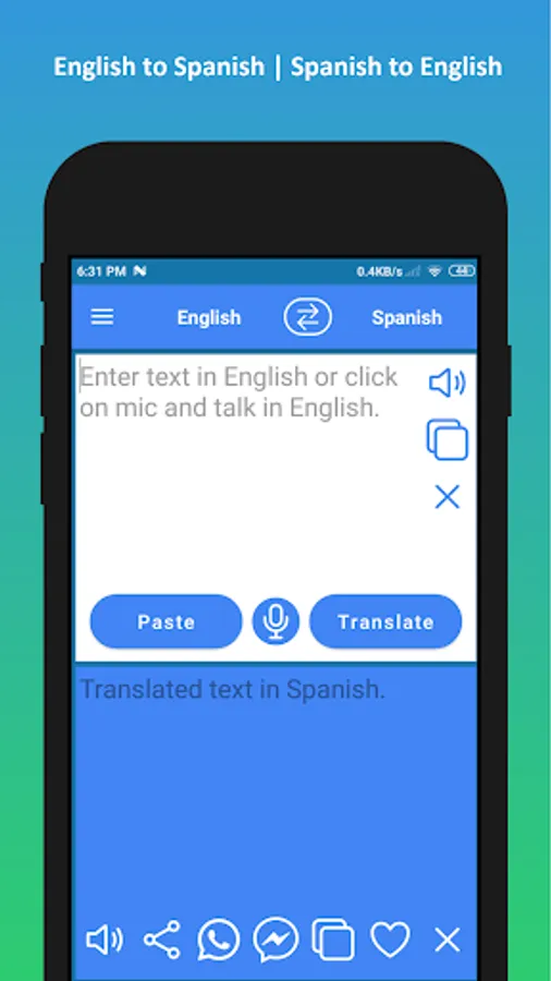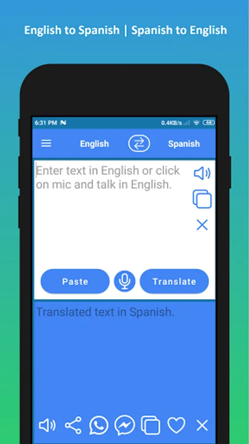 ✓ 6. One click share translated text to WhatsApp or FB Messenger.