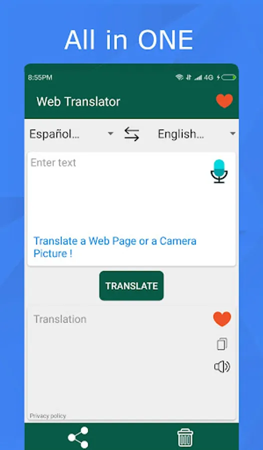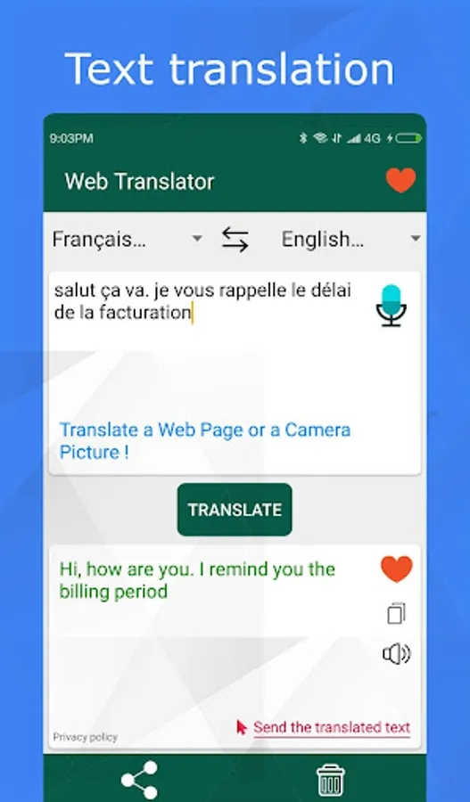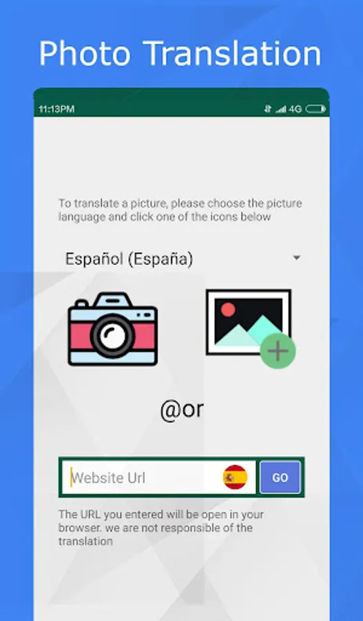 Translator for photos allows you to make text translation, image translation, text translation, camera translation, web pages translation as well as voice translation from any language to your wanted language. It is flexible and simple to use. It supports website translation in all languages.