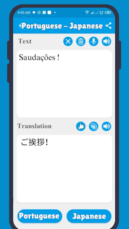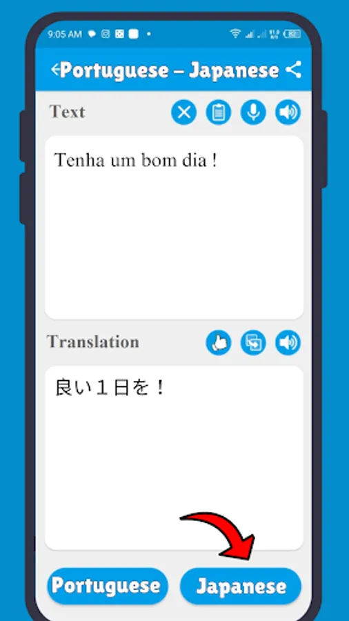 With this Japanese Portuguese translator (português japonês tradutor) you can translate words and text from Japanese translator (japonês tradutor). This translator app is ideal for students, tourists, and travelers. This Free translator can quickly translate of complete sentences.
