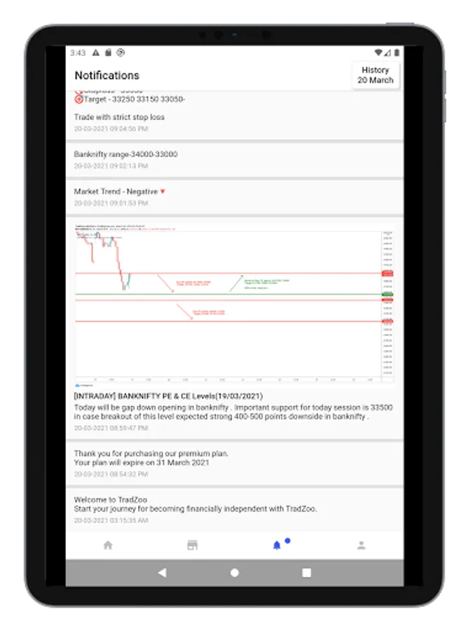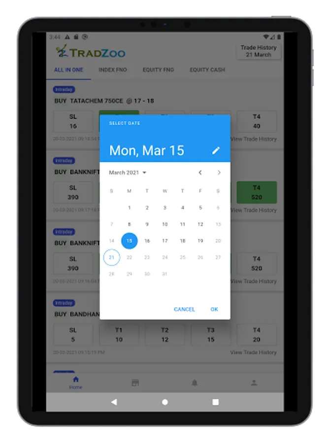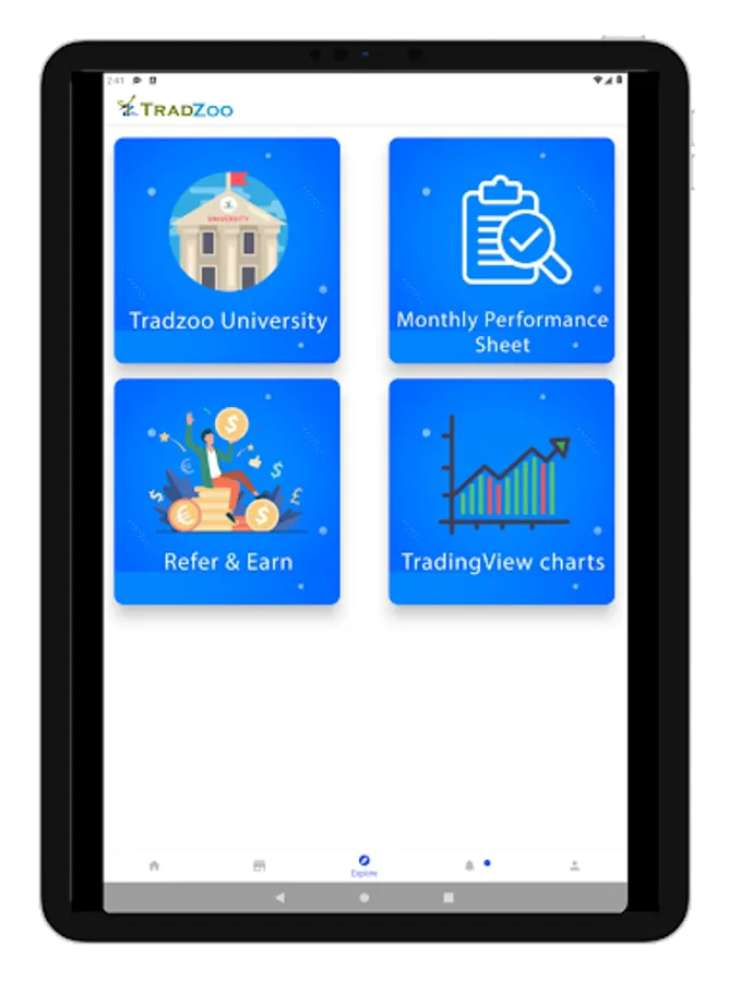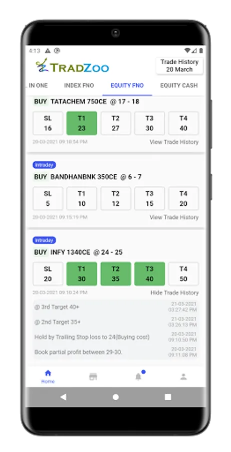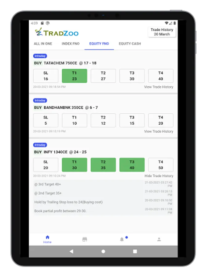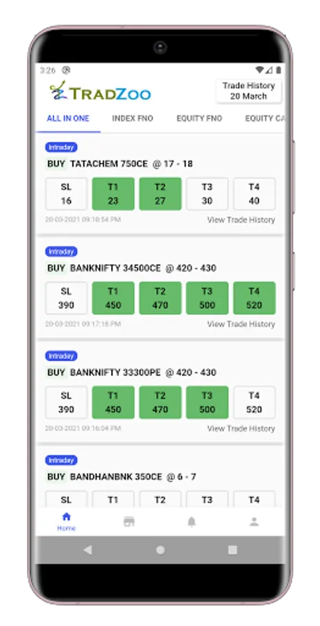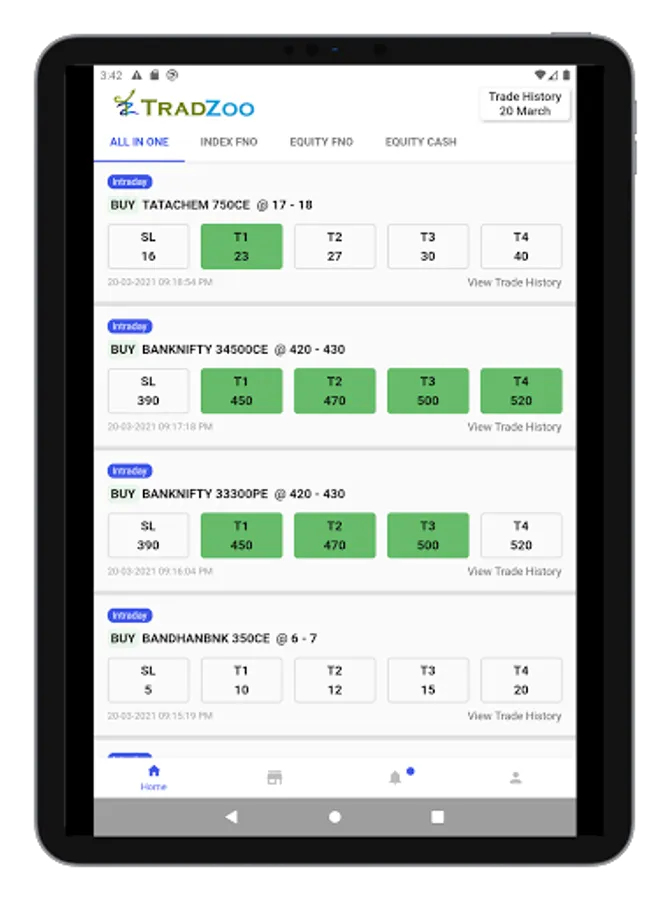 TradZoo provides you free intraday learning and historical ideas. This app is only to watch market prices and learning swing/intraday Analysis.