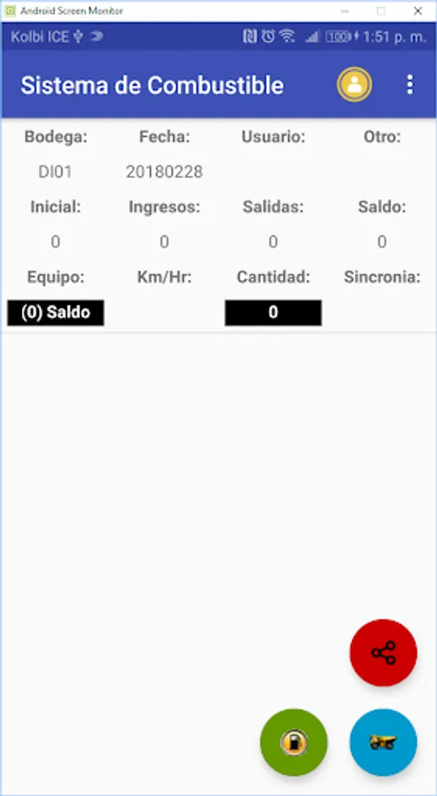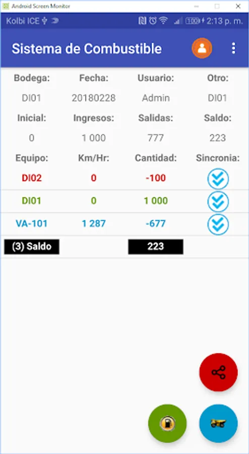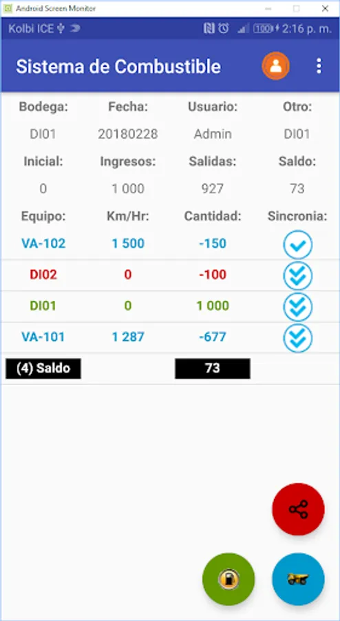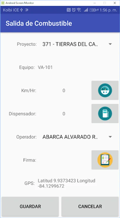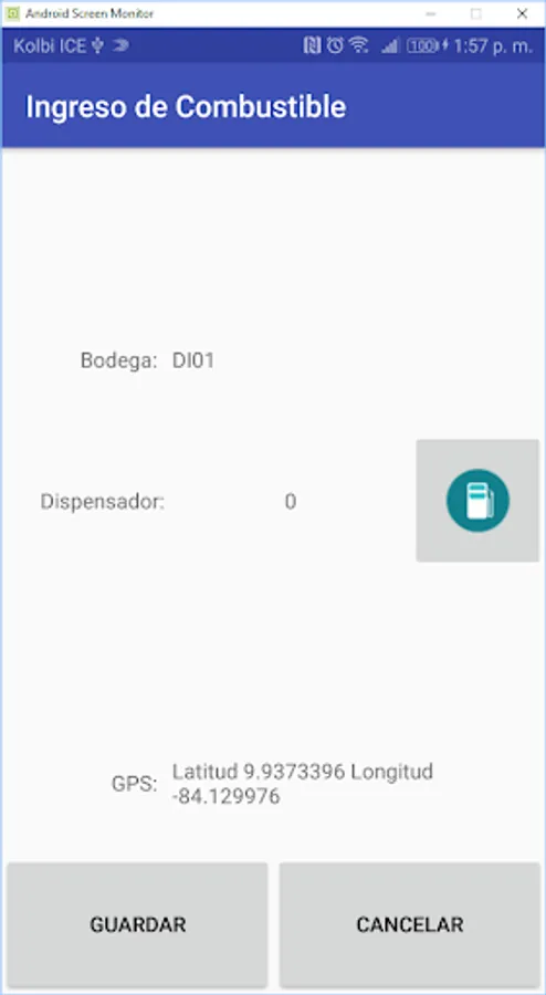 System private use. Used to control the release of different mobile fuel warehouses Company Tractors Escazú.