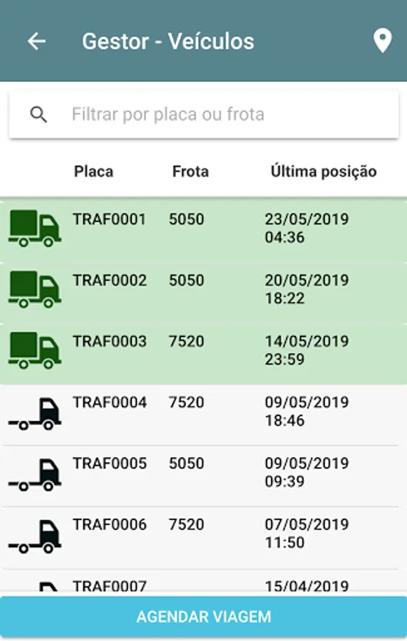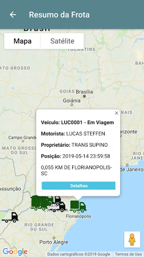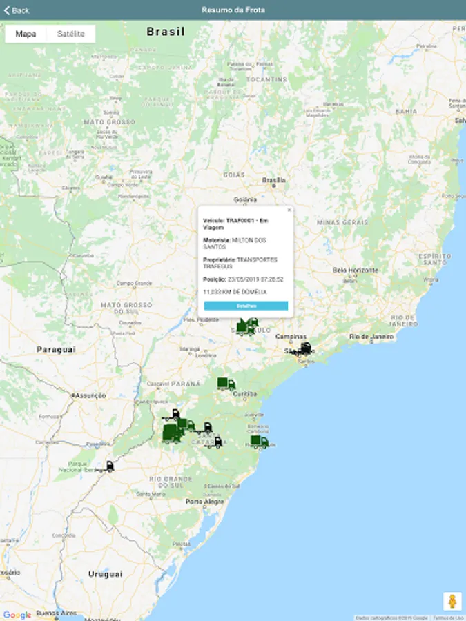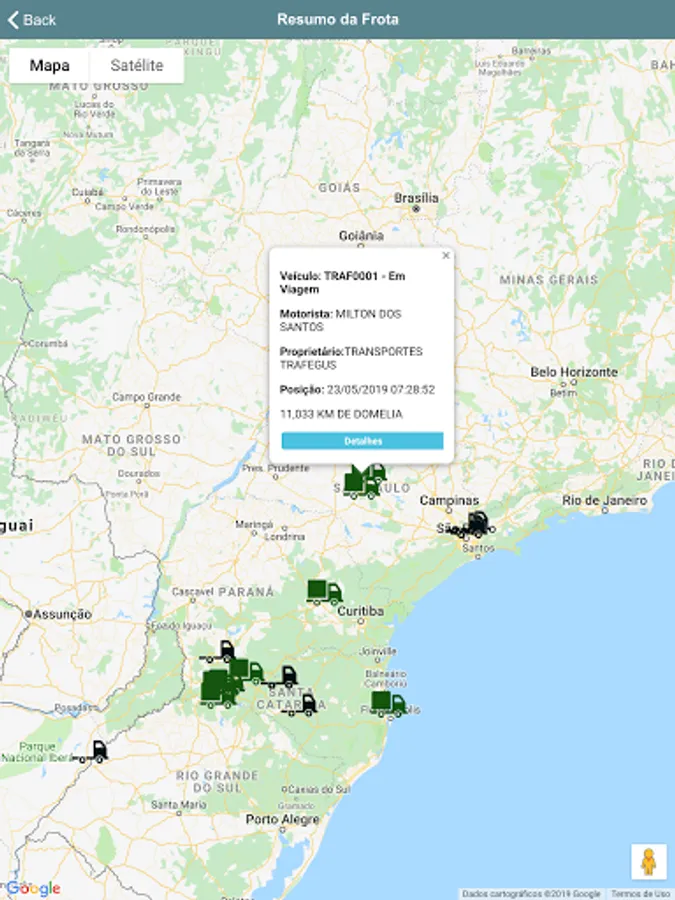 These positions are shared with the Trafegus system (web and desktop software) to control deviation events, entrances and exits at registered locations and travel tracking.