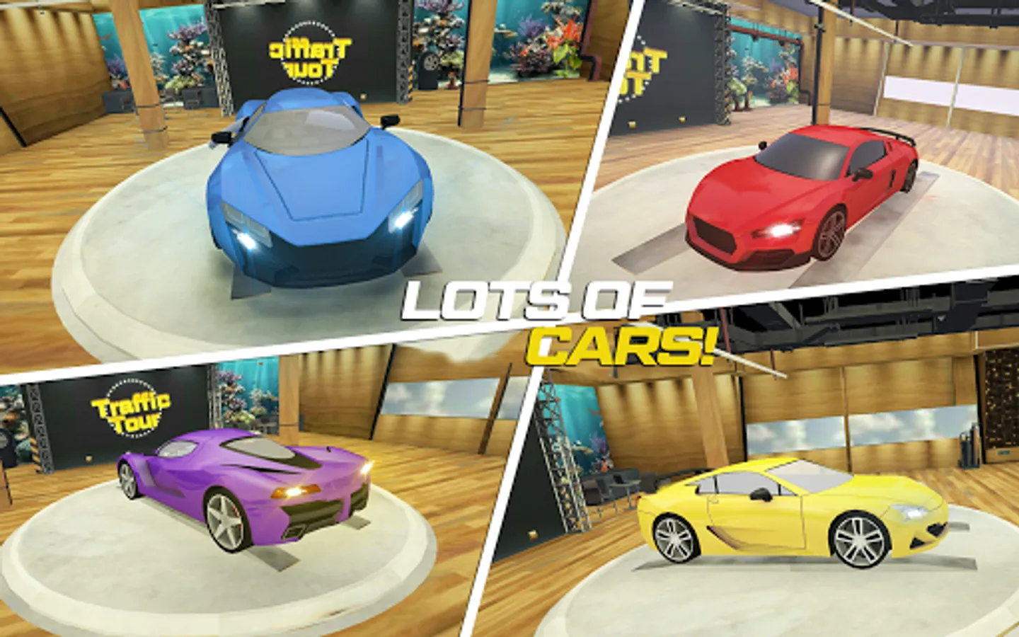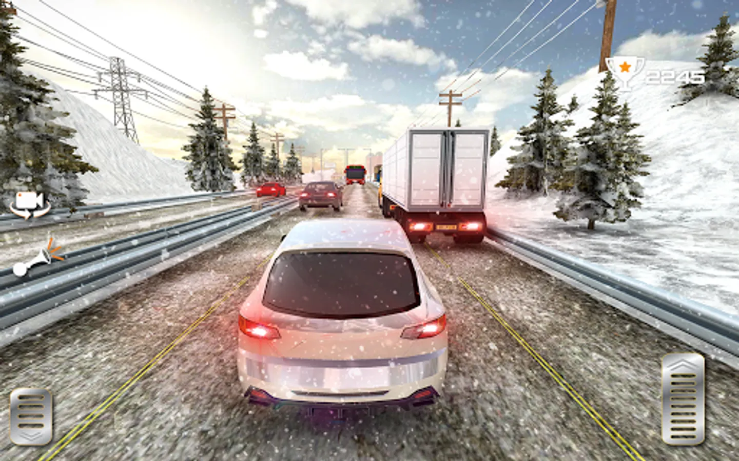 Among all traffic cars driving games this game is unique with three different environments open from level one. Traffic Driving in Snow, Desert and Highway are the options provided. Turbo Traffic Racing is fun with Different Camera angles. On Traffic Highway Tour Car Game gives modern and easy to use garage where you can upgrade cars, give different colors to your cars and there are many cars available for purchases using the virtual Cash in game.