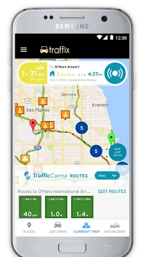 With Traffix, you can receive all of this information via the map and route segments or you can also listen to custom audio reports for your personalized routes to learn which roadway is best.
