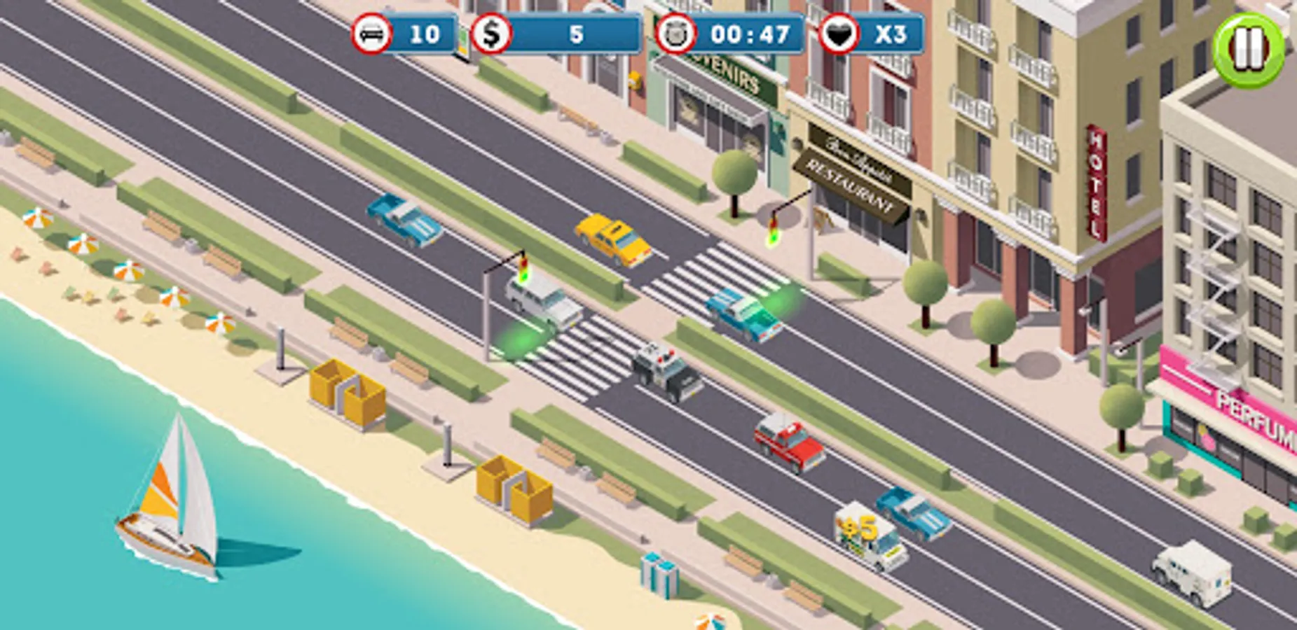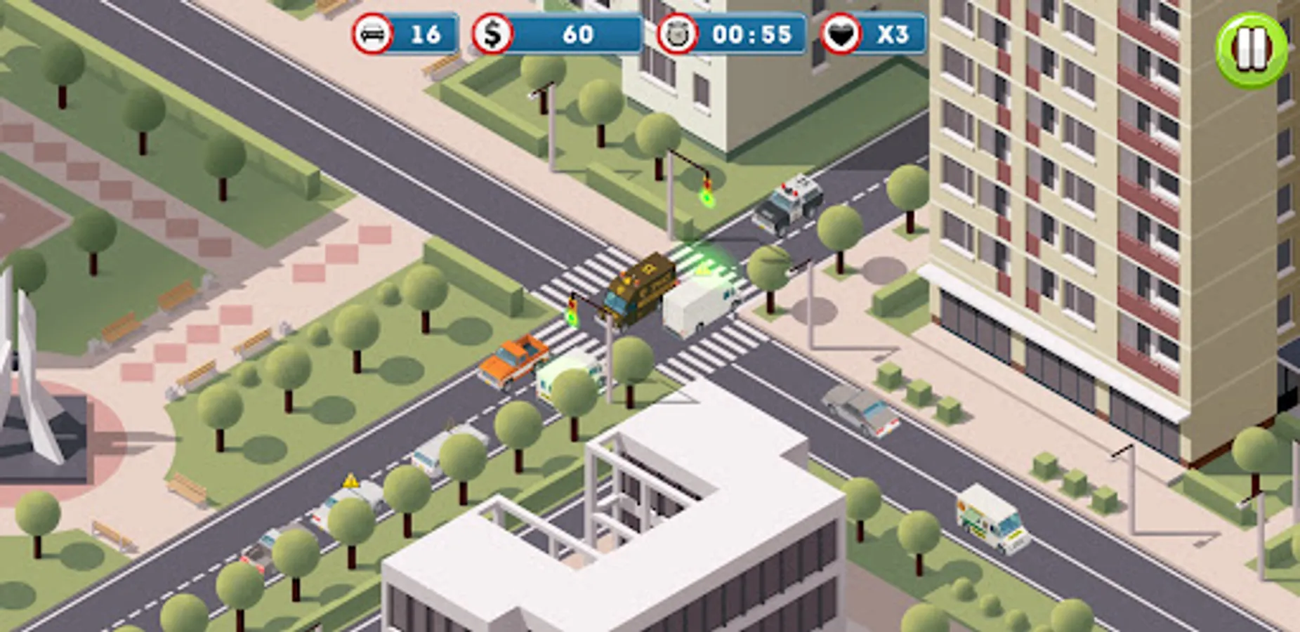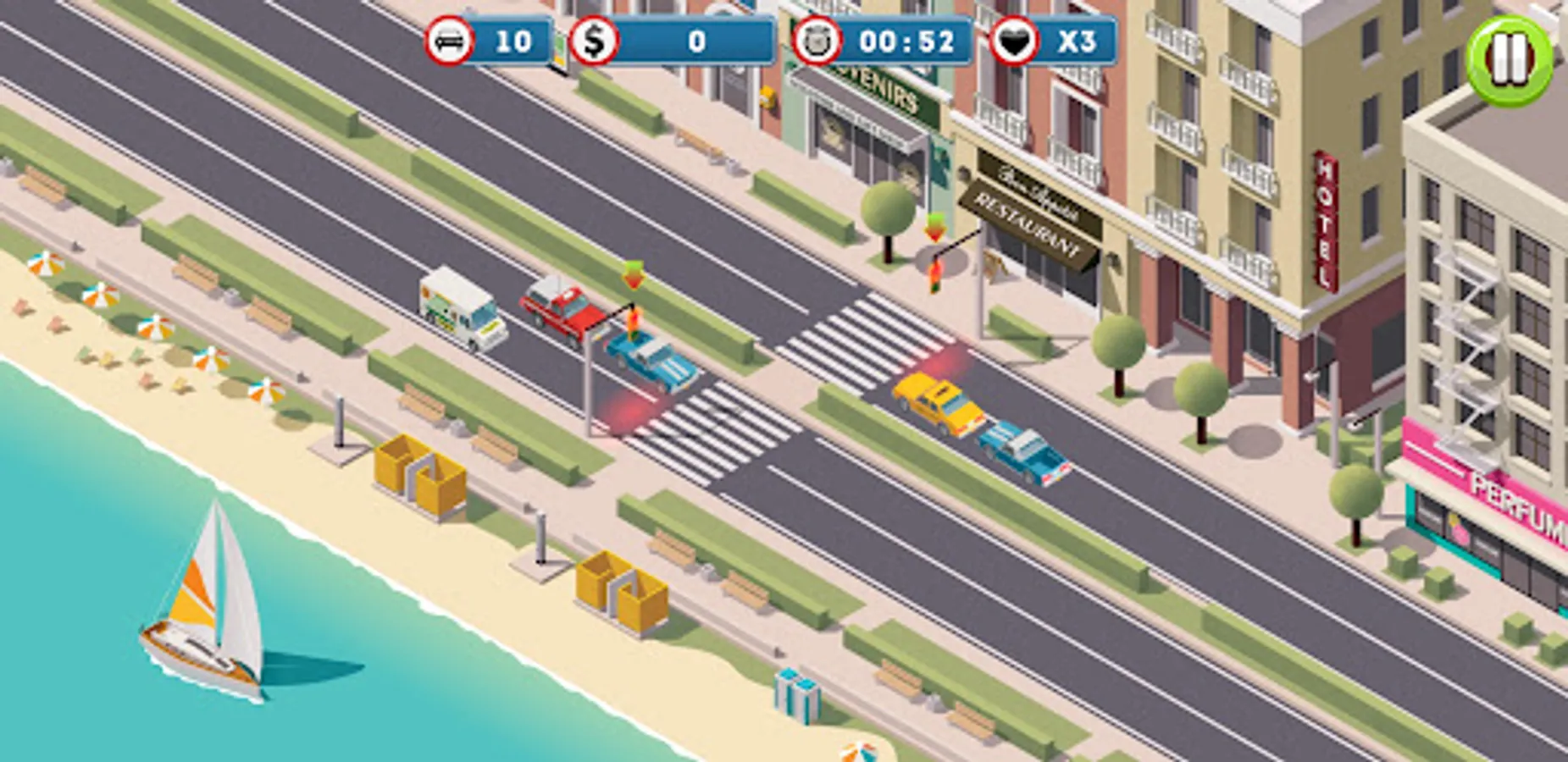 Automatic traffic lights are malfunctioning! Can you control the lights at different intersections and get the traffic flowing smoothly? Be careful not to crash the vehicles into each other.