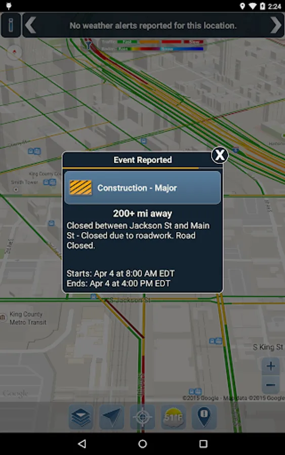 If you travel during off-peak hours, non-community traffic providers also report various incidents including road closures, road construction, and miscellaneous events.