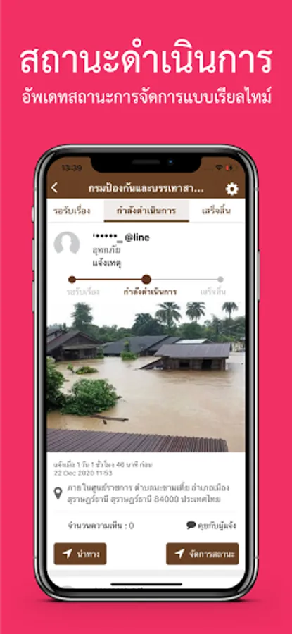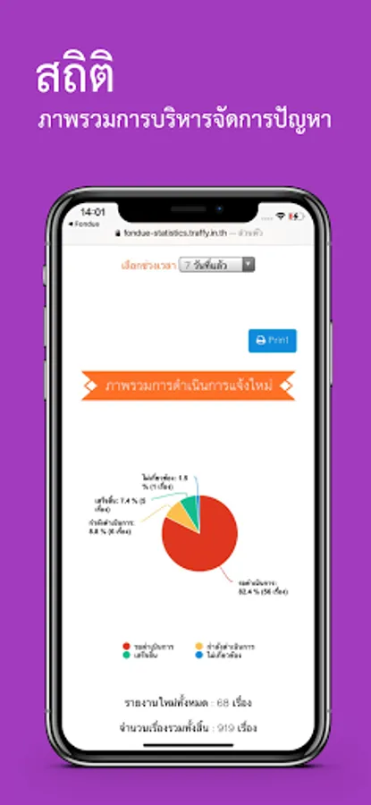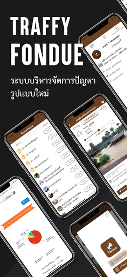 Traffy Fondue is an application for receiving problem reports. Suggestions from the informer and the support system for managing the problem for higher efficiency In which the informant does not need to know the staff Or know who was responsible for the problem before Can report problems The system is designed to be easy to use. Only the informant takes a picture and indicates the type of problem. The system will immediately report the problem to the staff and the responsible team. On the staff side The system will help sort out the problem type and report the problem directly to the supervisor and responsible staff. The system can provide progress information and track problem status via mobile phone. This system allows informants to participate in the care of their own community (condominiums, industrial estates, villages) environment and also gives them the opportunity to encourage them. Can comment on the performance of the staff as well The informer and staff can communicate and help solve community problems together. This creates a jealousy and caring for the community (condominiums, industrial estates, villages) to be more livable.