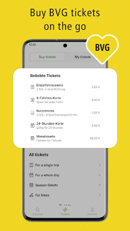 ● Convenient purchase of public transport/transit tickets (bus, tram, S Bahn, U Bahn)