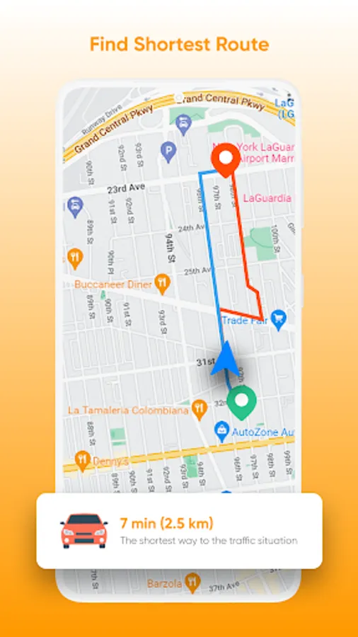 π Escape The Traffic β Avoid traffic jams with the most accurate real-time/Live traffic information indicating with clear visible colorful lines on the map during navigation and choose the route with low traffic.