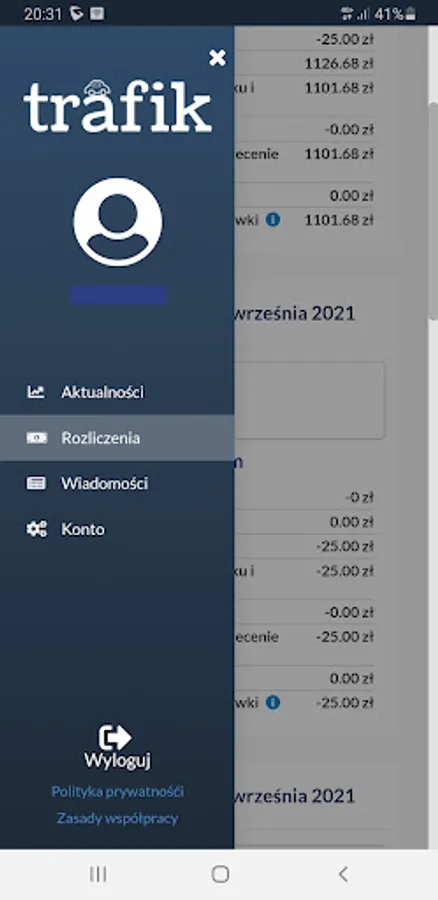 The application allows you to easily and quickly view the details of your settlements, news and news related to cooperation with trafik.