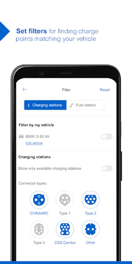 # Filter by connector type, charging speed and charge point availability