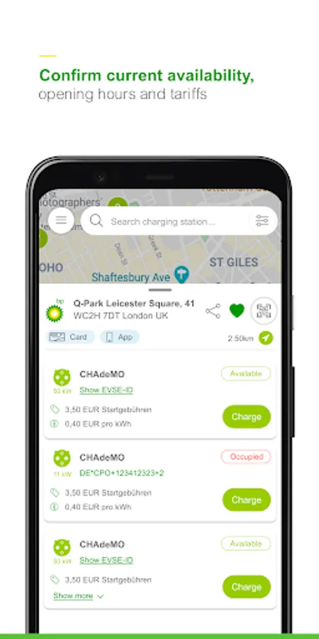 # Avoid detours and downtime by locating suitable charge points and viewing their real-time availability status