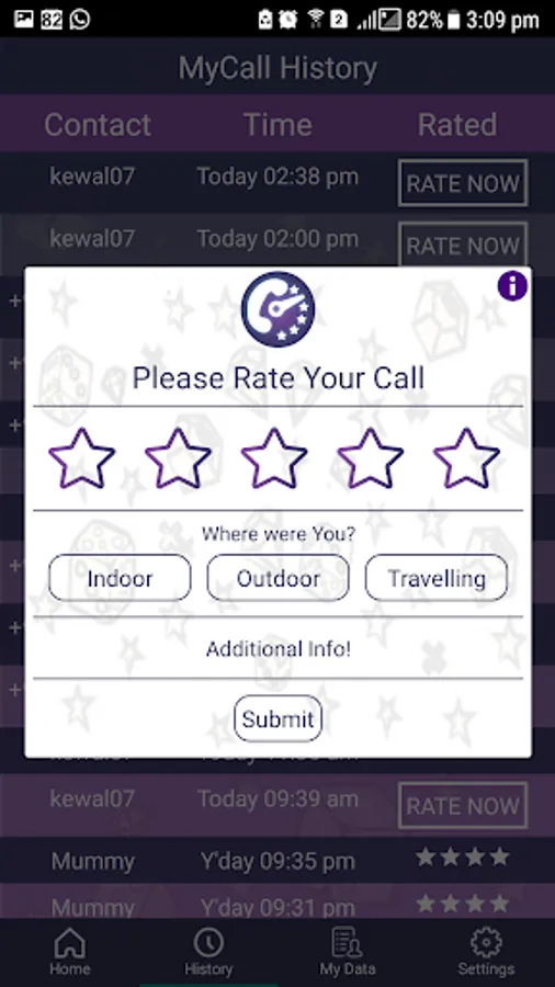 c. Feature to rate a call later from History; ability to rate multiple calls together