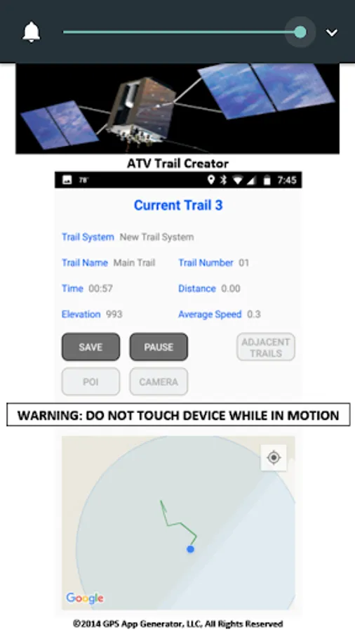 There are three permissions needed, Camera, Location and Storage. Camera is needed to be able to take pictures while in the App. Location is needed to be able to record the Trails you travel on. Storage is needed to save the Trails and Points of Interest you discover, and pictures you take, to your phone. The Trail System name you input, becomes the folder, under the ATV Trail Creator directory on your phone, that the App stores the GPX files in. Some screenshots are of what can be done with the files that you save with this App.