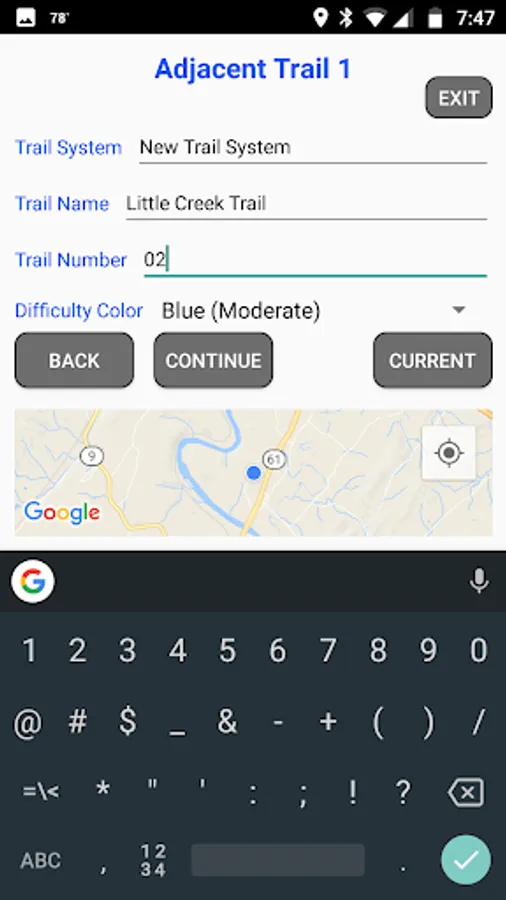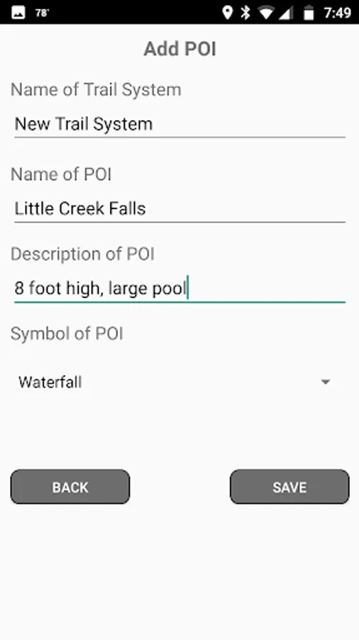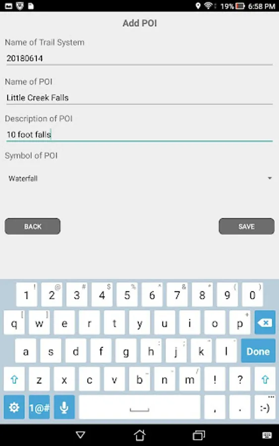 This App enables the user to gather GPS data for Trails they ride on, including the Trail System, Trail Name, Trail Number and Difficulty Color code including waypoints recorded sequentially as you drive on the Trail. A full set of Trails is called a Trail System. This App also enables you to gather Points of Interest (POI) that you find along the way.