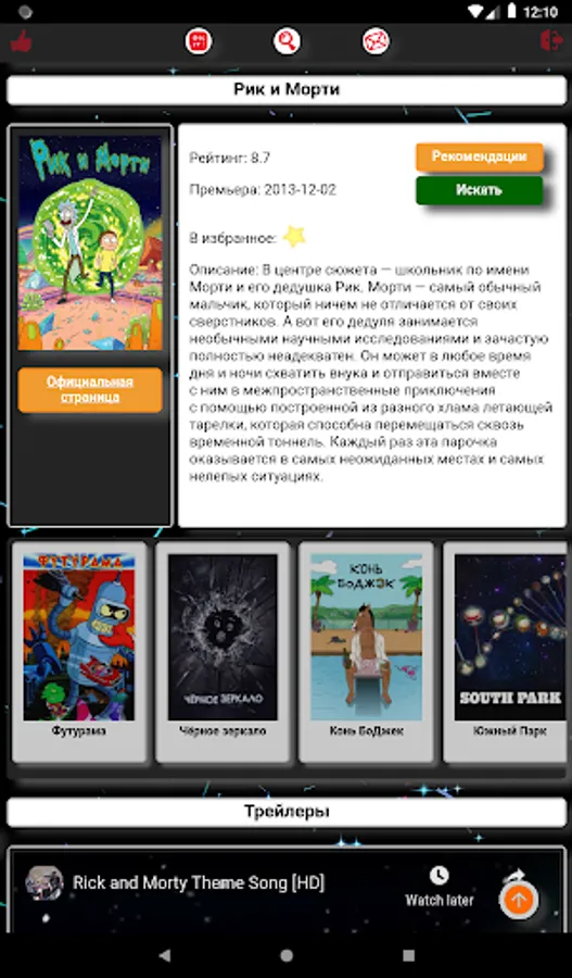 The application will help you quickly find an interesting movie or series, and an advanced recommendation system will help you choose content based on your preferences.