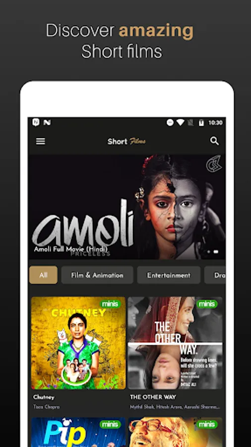 ShortFilms is your one stop solution to watch original and award winning short films. Providing a perfect app to find and watch short films.