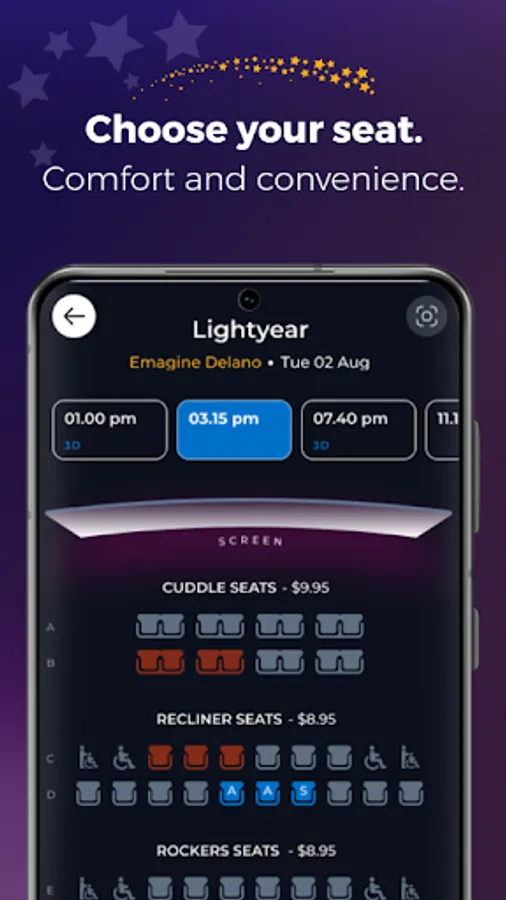 * Easily switch between different showtimes with just a tap, directly from the seat layout screen