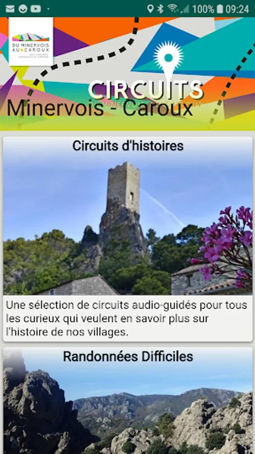 This application is produced by the Community of Communes from Minervois to Caroux in partnership with its tourist office. The territory is located in the southernmost part of the Massif Central, west of the Hérault Department.