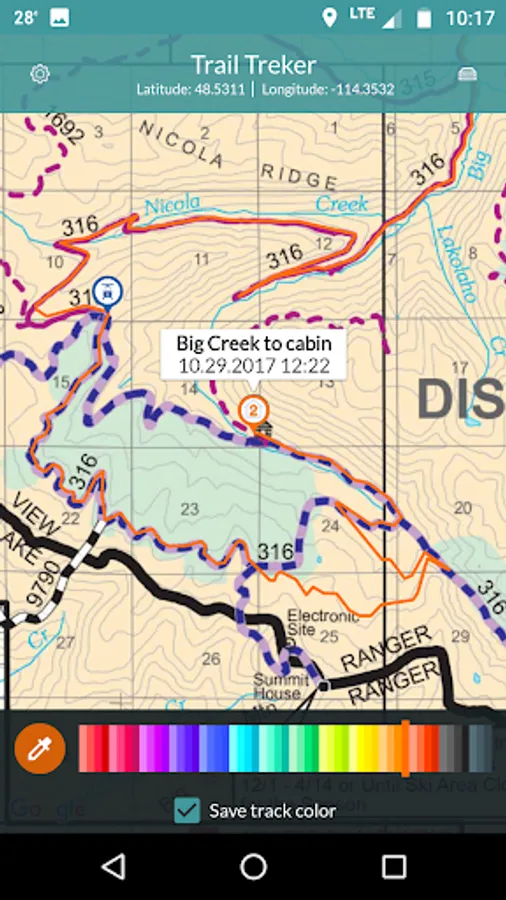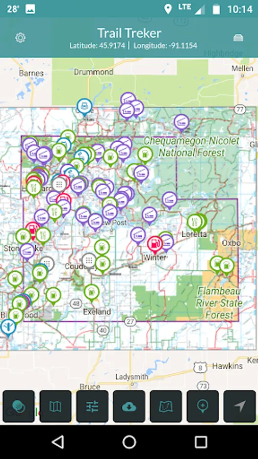 Trail Treker is a map viewing tool for use with the Trail Treker map publishing service. Trail Treker worker works with clubs, tourism agencies and municipalities to make their maps work offline on end user smartphones. Once the map is loaded, you no longer need phone service; the GPS receiver in your phone will operate without phone service. In fact, we recommend that you place your phone in Airplane Mode if you are in an area with limited or partial phone service to conserve your battery.
