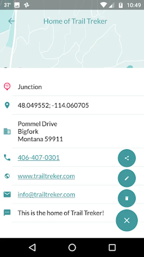 Trail Treker will also electronically, via GPS location, show local businesses and points of interest. You can store your own points of interest as well. Key points such as survival shelters, supplies, or emergency evacuation points may be shown on various maps. Note: Only those gas stations/POIs that the member supplies will be shown.