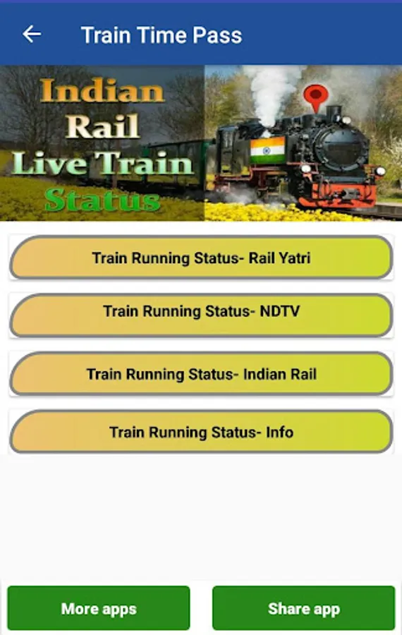 "Live train running status app is a unique train app for Indian railway. The exclusive app providing PNR status in India. Live running train status, time tables, station status, PNR enquiry with prediction, a unique berth & seat availability, and reservation date for Indian Railways. This app has a unique feature of "Time pass" when you are travelling or staying on the platform even when you are anywhere it will entertain you with the very good feature of the app.