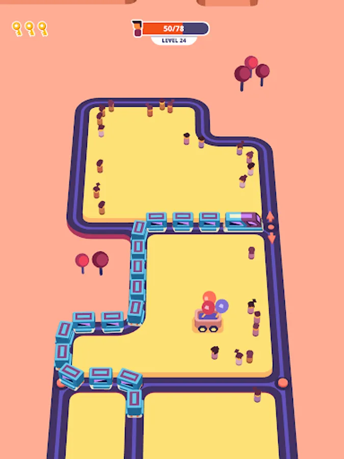 Collect all the people to complete a level. The more passengers you have, the longer the train gets! Be aware of your tail, avoid the crash!
