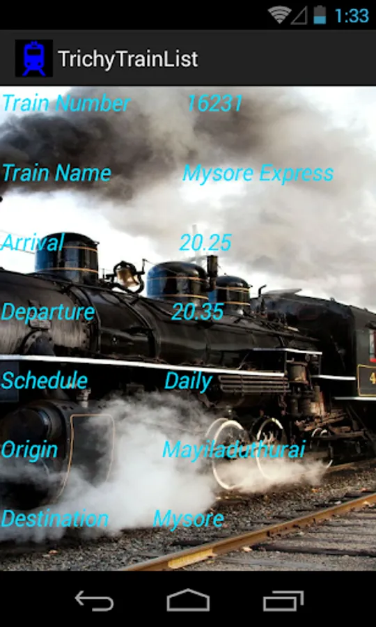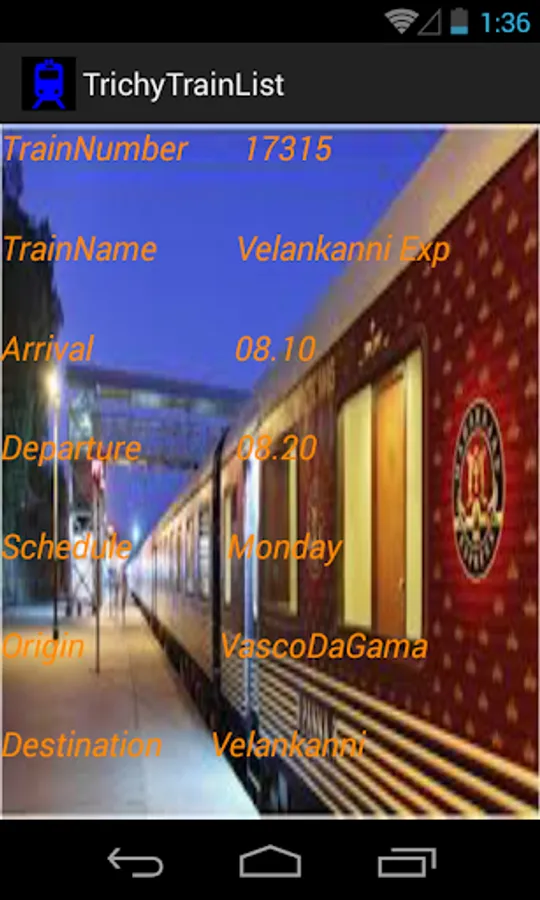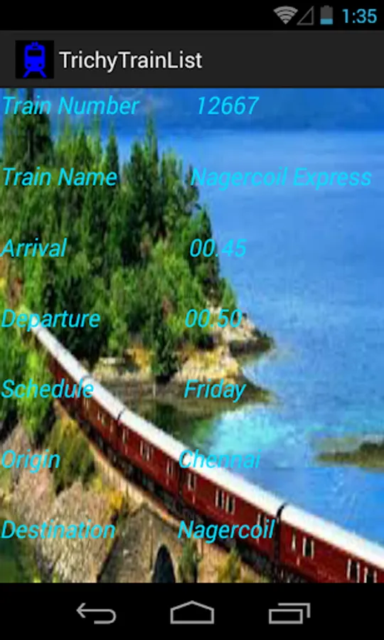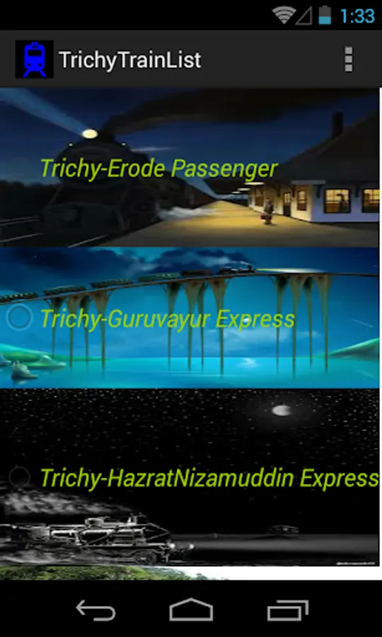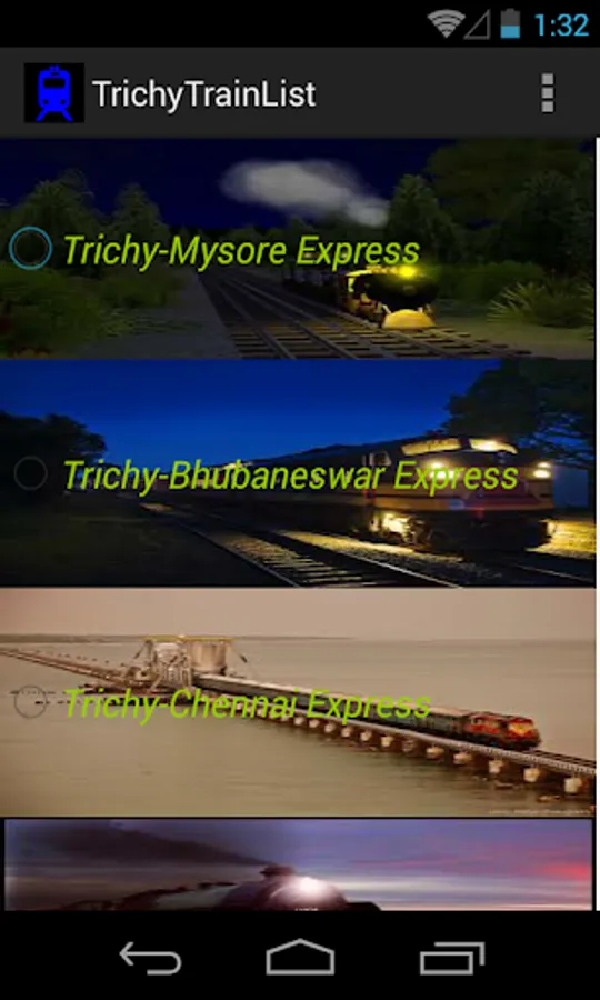 This is a simple App which provides the list of trains available from Trichy Junction.